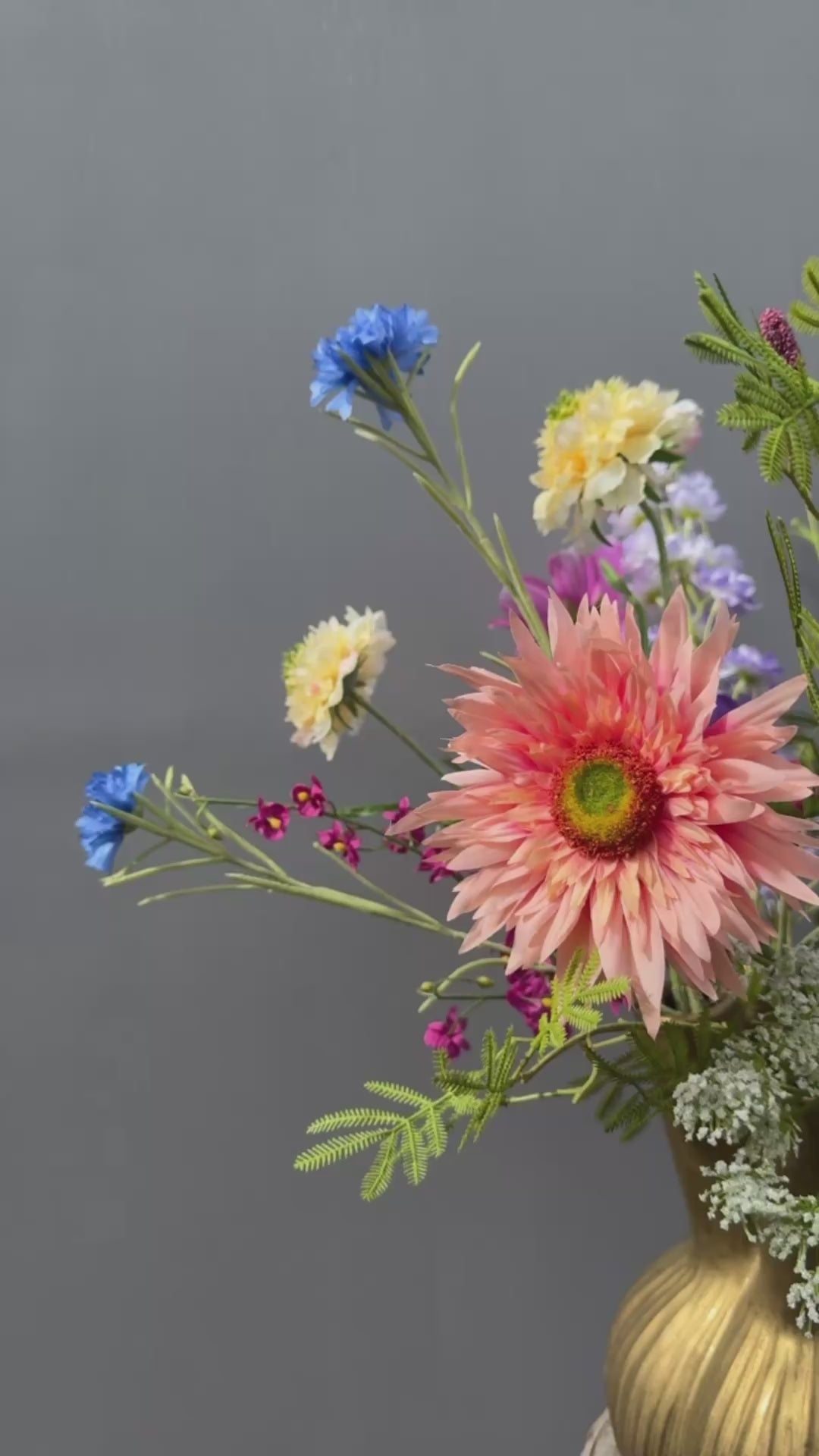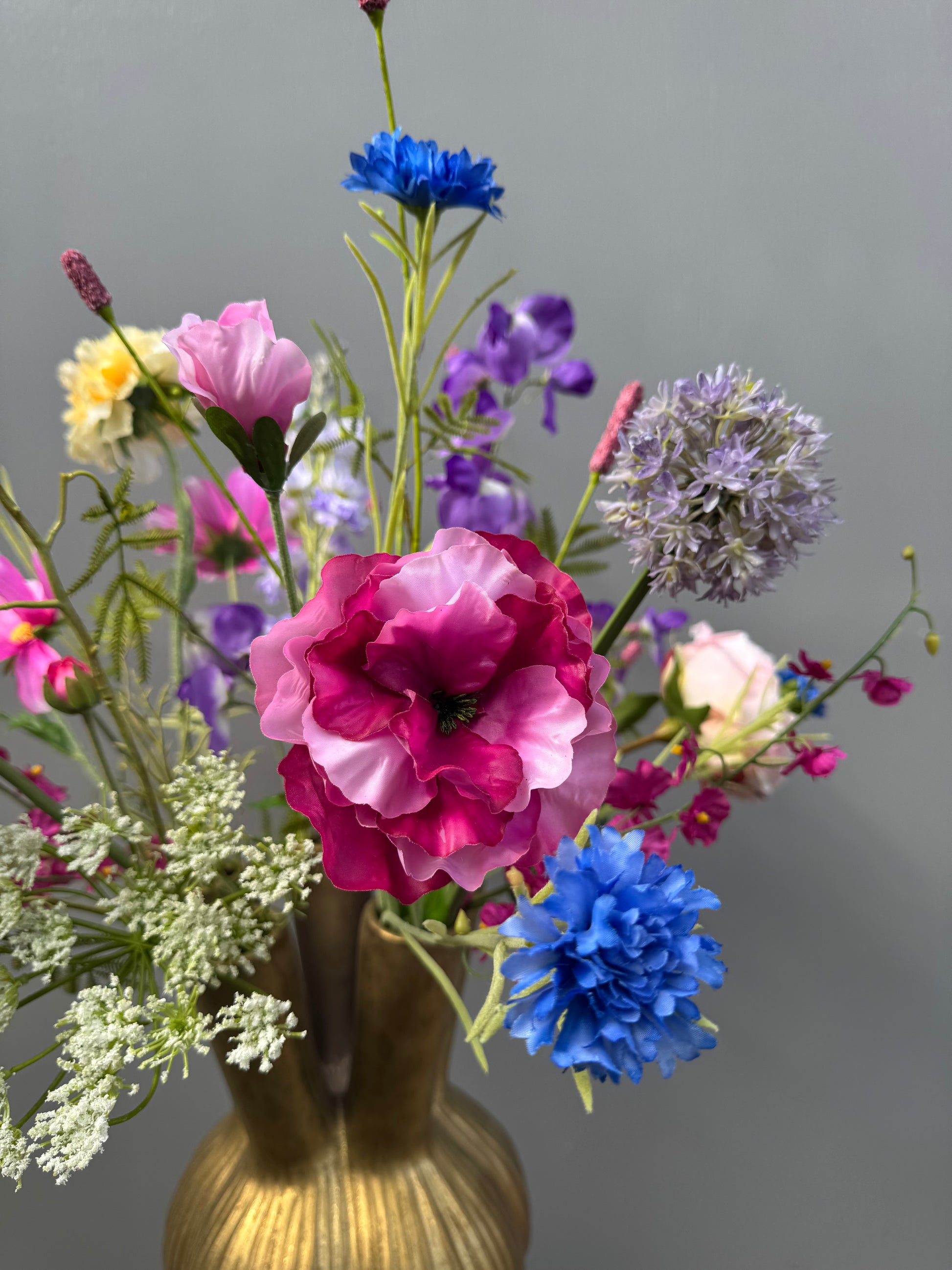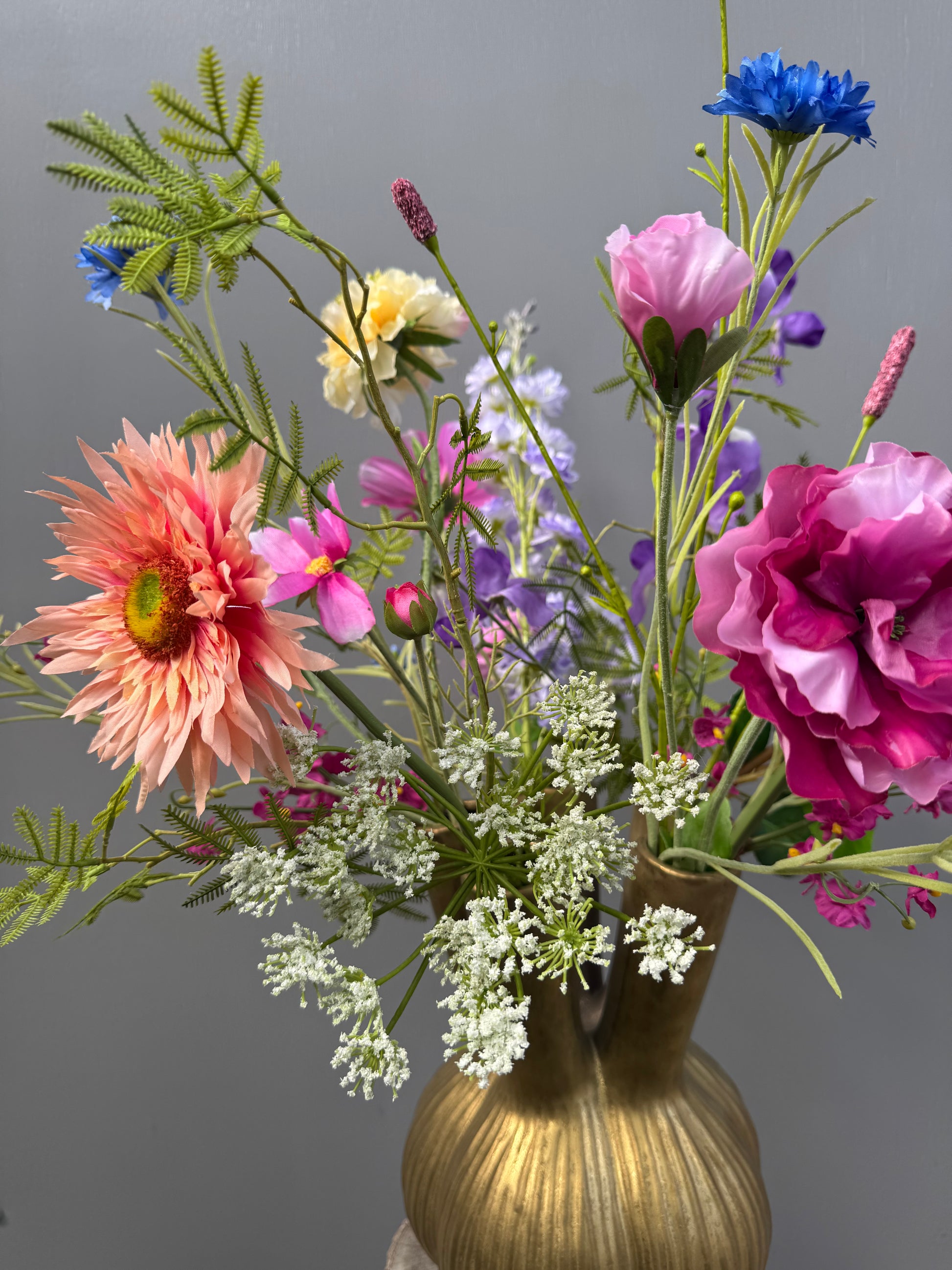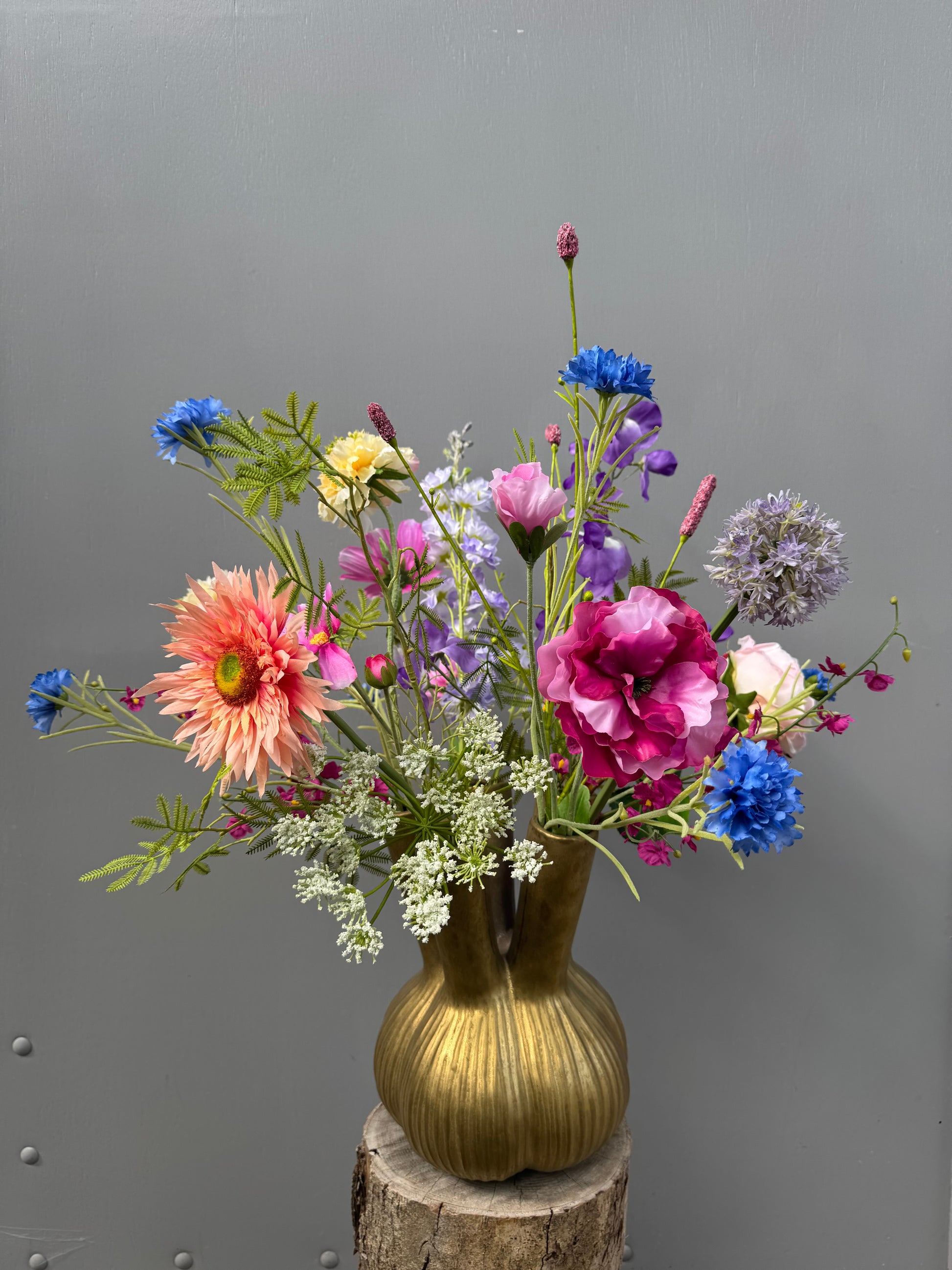 Dit prachtige zijden bloemstuk is inclusief vaas Aglio Oro!