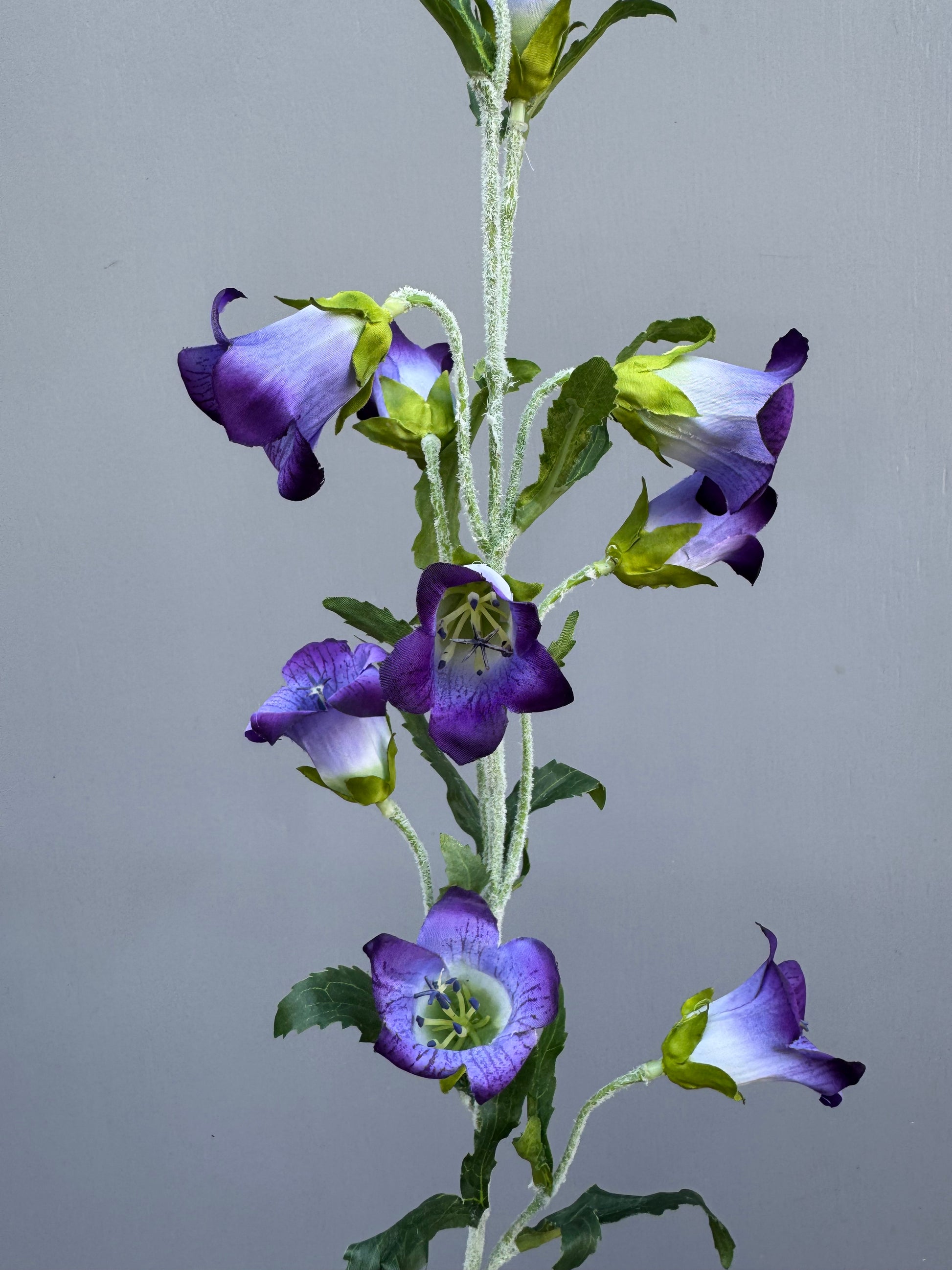 Deze paarse zijden campanula is een subtiele, verfijnde bloem die charme en kleur toevoegt aan elk boeket of interieur.