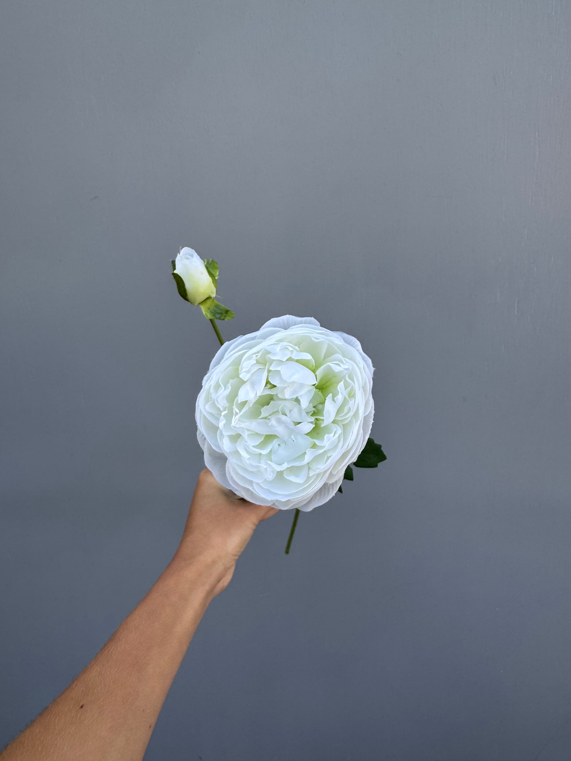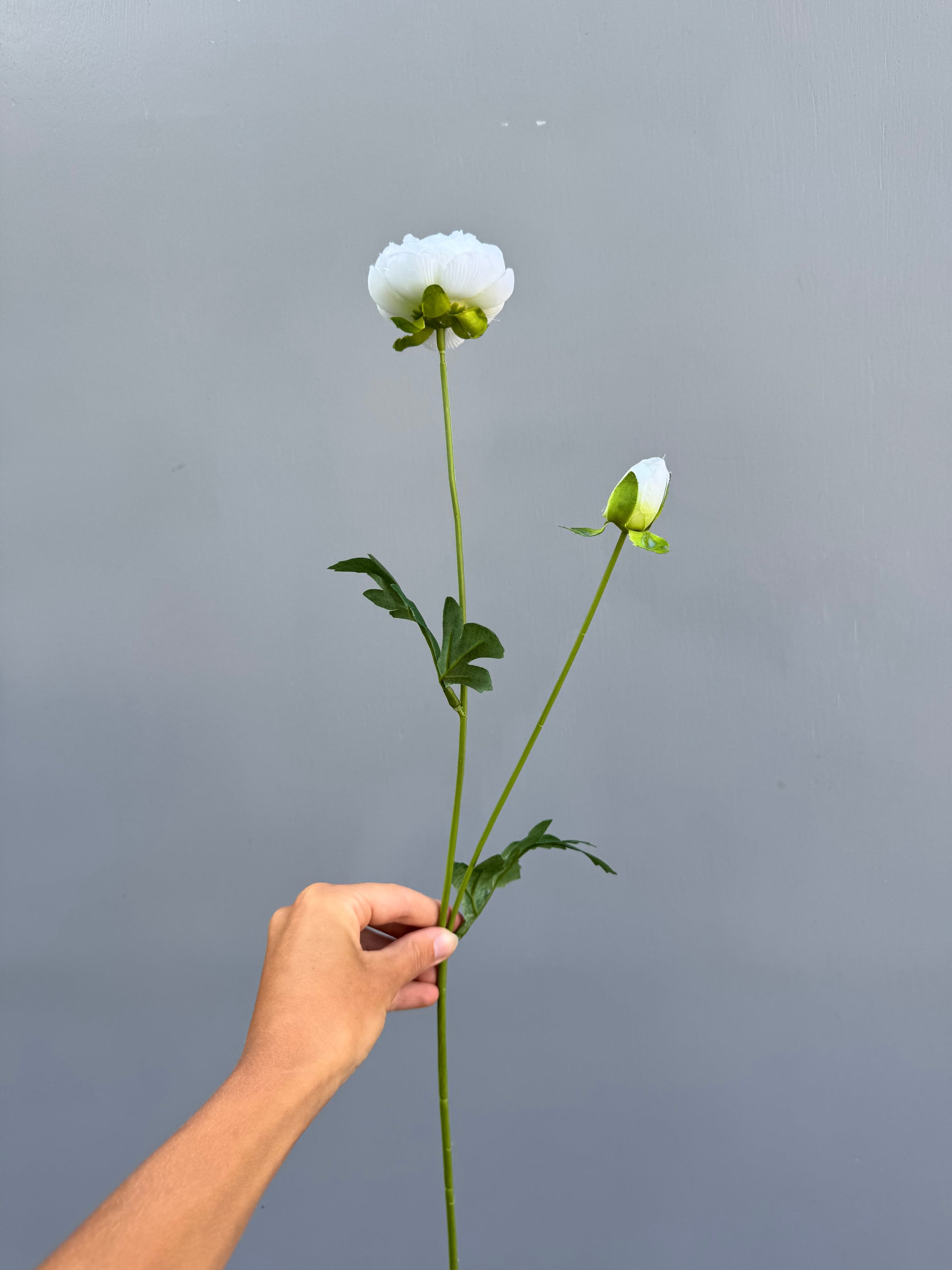 Deze witte zijden ranonkel is een tijdloos mooie bloem met een elegante en verfijnde uitstraling. De bloem is zorgvuldig vormgegeven met oog voor detail, waardoor hij bijna niet van echt te onderscheiden is.
