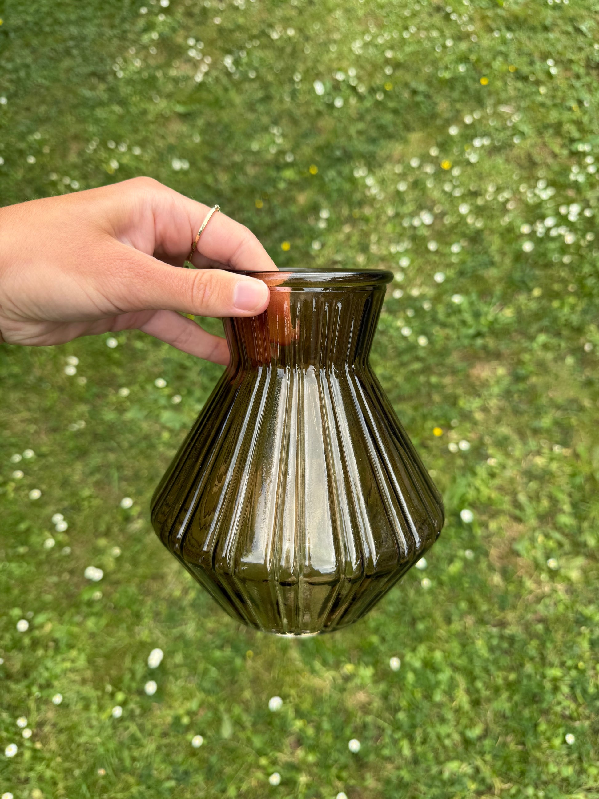 Breng subtiele warmte en elegantie in huis met deze taupekleurige glazen vaas. De zachte donkerbeige/bruintint en het stijlvolle geribbelde ontwerp geven dit compacte vaasje een tijdloze uitstraling. Perfect voor zowel klassieke als moderne interieurs.