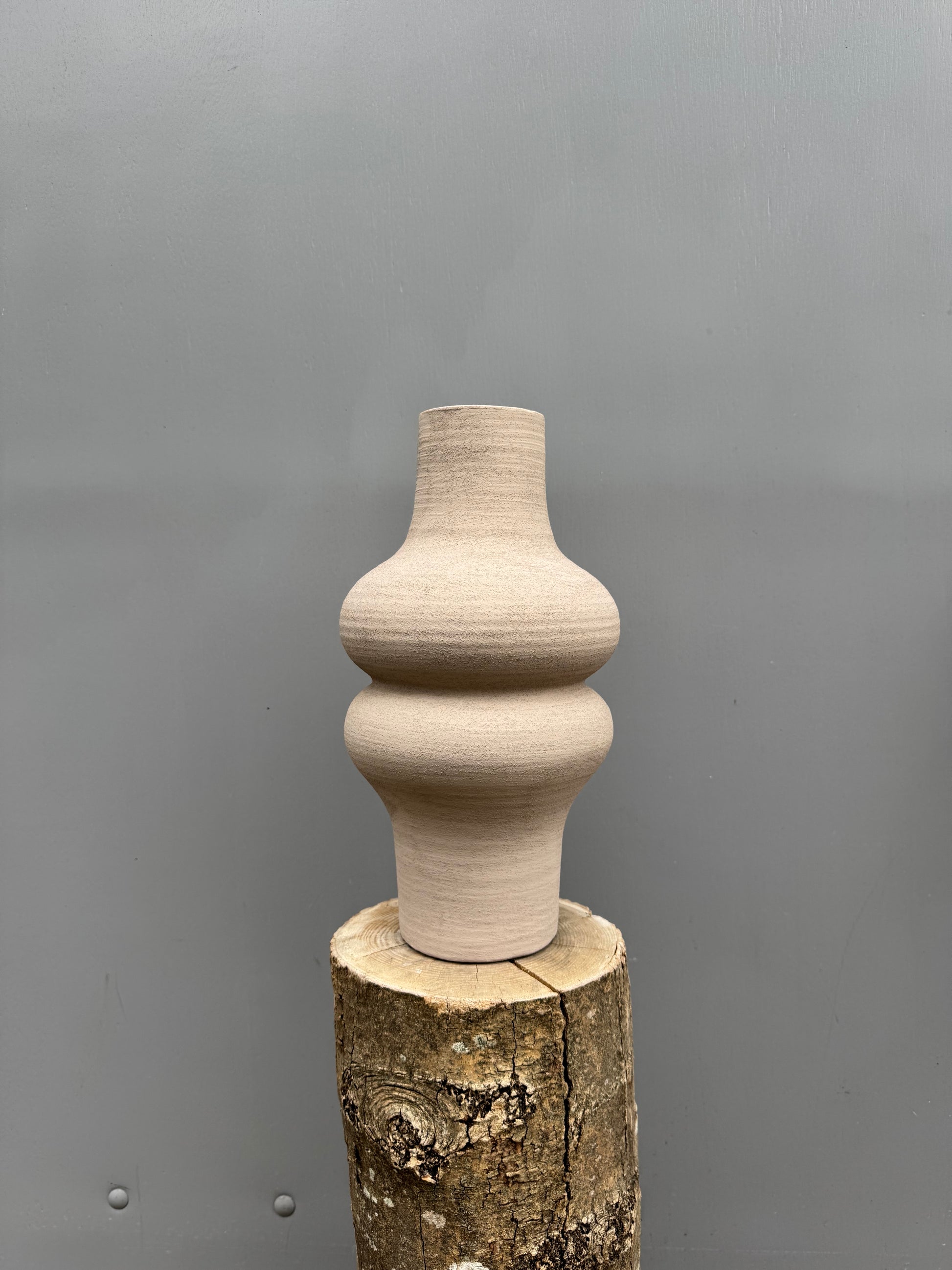 Vaas Lisboa sand hoog – zandkleurige aardewerk vaas met zachte vormen en subtiel reliëf